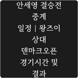 덴마크오픈 배드민턴의 마지막 고비가 남았습니다. 안세영 선수가 결승전만을 앞두고 있으며, 그 상대는 중국의 왕즈이 선수입니다. 만만치 않은 실력자의 대결이기에 치열한 승부가 예상됩니다.
