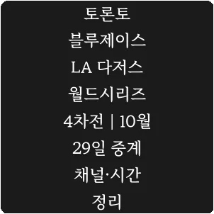 토론토 블루제이스 LA 다저스 월드시리즈 4차전|10월 29일 중계 채널·시간 정리