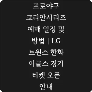 한국시리즈 티켓 예매 바로가기|LG 트윈스 한화 이글스 경기 일정 및 취소표 확인