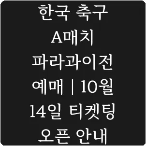 한국 축구 A매치 파라과이전 예매|10월 14일 티켓팅 오픈 안내